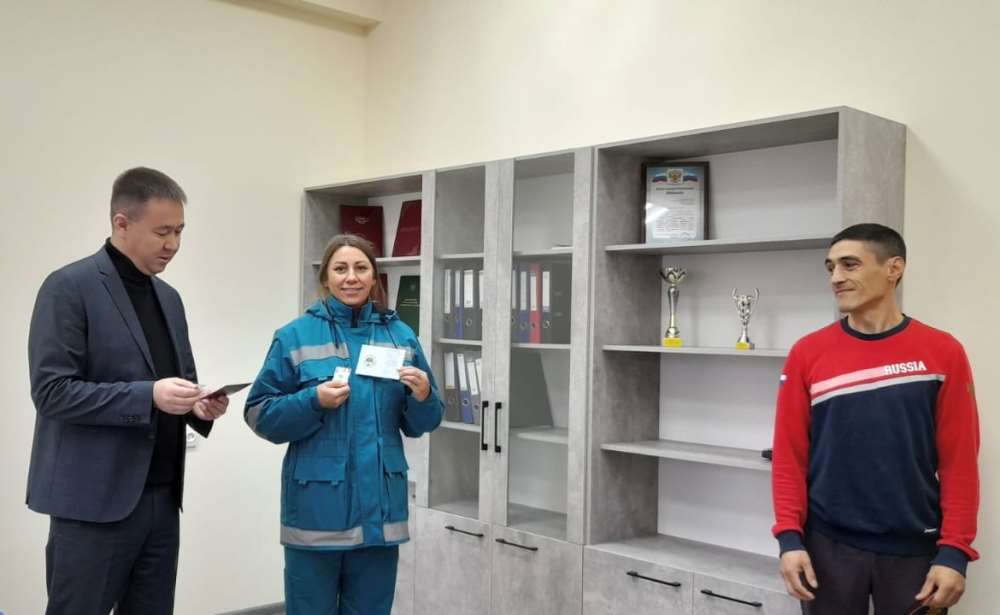 29 сентября в кабинете главного врача ГБУЗ станции скорой медицинской помощи г. Златоуст царила по-настоящему праздничная атмосфера. В торжественной обстановке главный врач, депутат законодательного собрания Златоустовского городского округа Ренат Яхиевич Фахаргалеев вручил знаки отличия Всероссийского физкультурно-спортивного комплекса «Готов к труду и обороне» фельдшеру ГБУЗ станции скорой медицинской помощи Зинатуллинной Эльвире и Зинатуллинну Денису – мастер спорта международного класса по боксу. На торжественном вручении присутствовал заместитель руководителя управления МКУ Управление по физической культуре и спорту Аракчеев Николай. 👏